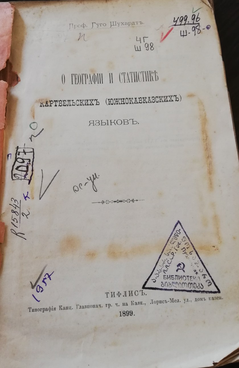 Hugo Schuchardt. O geografii i statistike kartvelskikh (juzhnokavkazskikh) iazikov. Tiflis, 1899.
