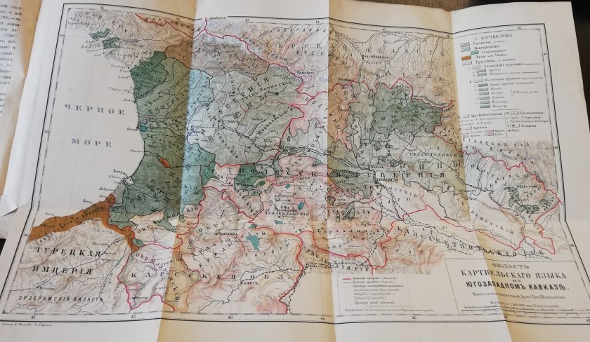 Schuchardt’s “On Geography and Statistics of Kartvelian(South Caucasian) languages”is a significant contribution to the development of Kartvelology, published in Russian in 1899. As a result of scrupulous work, he drafted a map (“Oblast’of the Kartvelian language in the South-Western Caucasus”) that outlines the area of the Kartvelian languages in the south-western Caucasus. He analysed language, culture and religion of the population in the Batumi district.